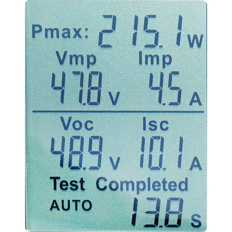 Comprehensive Testing Capabilities: Measures peak power current (0-35A), peak power voltage (12-60V), open circuit voltage (12-60V), and short circuit current (0-35A)